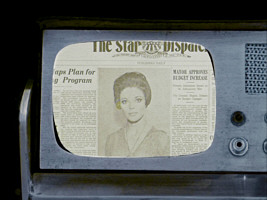 It first seemed that there was no connection between these new filler texts and the ones already known from TOS. After all, it is well possible that some time between the 1960s and the 1980s the standard text for newspapers was exchanged. However, already in "The City on the Edge of Forever" we can make out the short sentence "A suggestion that public hearings on applications be limited to one every" below the picture of Edith Keeler. This exact sentence is the beginning of the more extensive passage "A suggestion that public hearings on applications be limited to one every six months was taken under advisement by the commission." that appears in the newspaper article of "Star Trek IV" and also in the four following Star Trek series. So we can say that the basic filler text remained the same throughout 30 years of Star Trek.