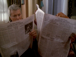 An issue of the Las Vegas Register appears in this episode, with Vic reading the sports and Nog reading the business section. It is not possible to identify any text passages besides the headlines.