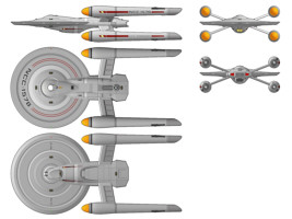 Note Renderings labeled "Enterprise-J" on various websites are actually of a different ship with the same saucer and a triangular secondary hull. This other design (depicted in the Ships of the Line calendar) is non-canon.