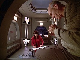 The Flaxian ship from DS9: "Improbable Cause" obviously reappears as the Entharan ship in VOY: "Retrospect", but also in another Voyager episode. Read Jörg's new article on Re-Uses of the Flaxian Ship.