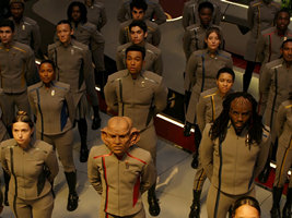 On the visual side, the totally new Klingons are the prime example. No matter how hard we may try to make sense of them, Discovery is a separate universe as far as the Klingons are concerned. Until they were revised in SNW (a revision that was fortunately kept for SFA), we were apparently expected to forget that Klingons ever looked different than in DIS. All members of the race of all eras in all other Trek series are either consistent, or they can be explained with the retcon from ENT: "Divergence". DIS defied the canon Klingons and exclusively showed a "proprietary" race. The producers told us they respected canon, but this did not apply at all to visual canon facts. Discovery was a "visual reboot", although in a visual medium this term makes about as much sense as "a little bit pregnant". SNW and SFA perform better in this regard, but they inherit design decisions (other than the Klingons) and their entire continuities from Discovery.