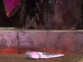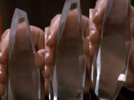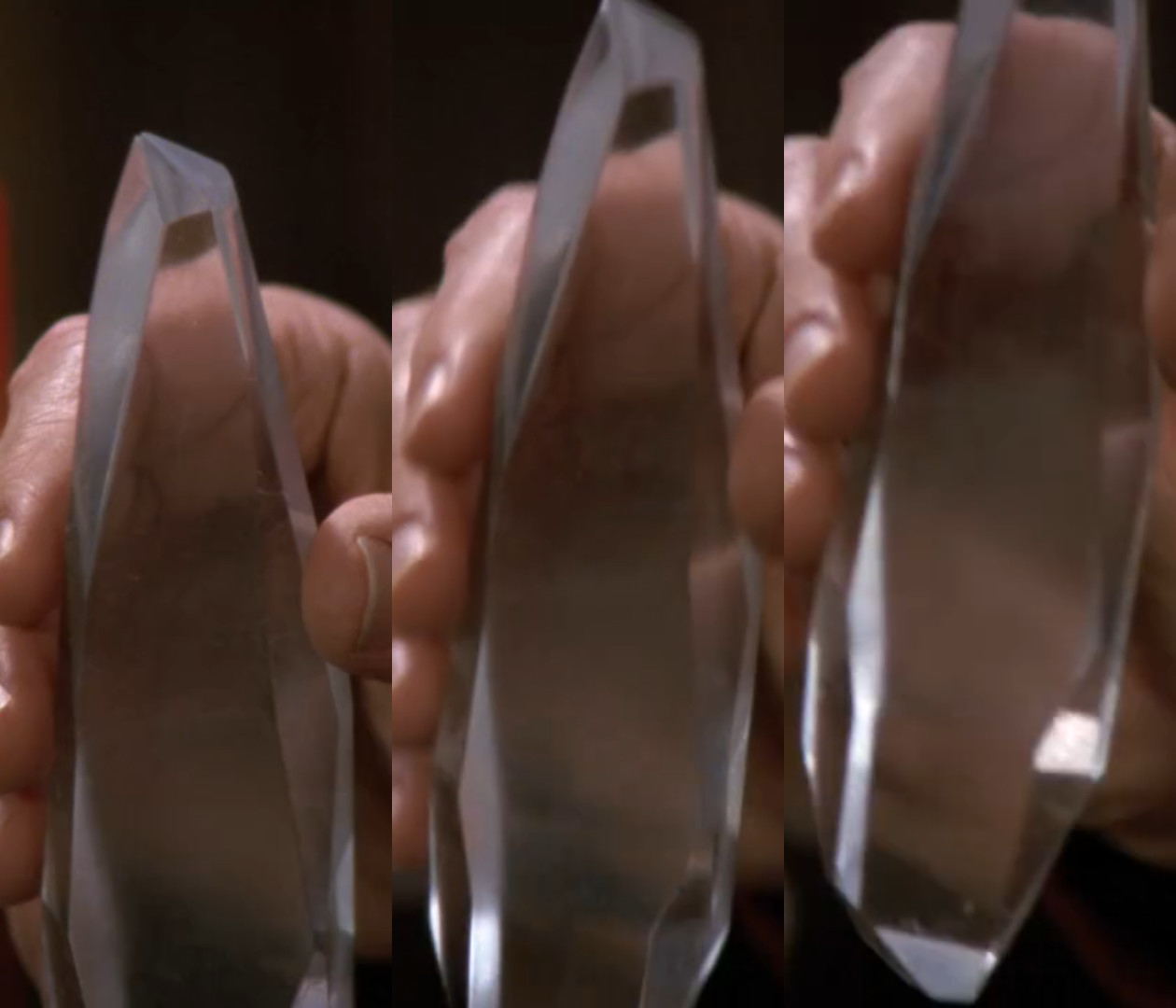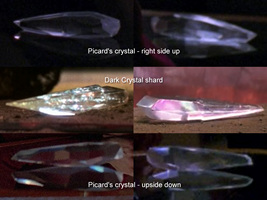 You sometimes find claims online that Picard's crystal is actually the same prop as the crystal shard from the film "The Dark Crystal". We have compiled screenshots from the film that clearly show that the two props are not the same. The crystal shard is much flatter and more symmetrical (bilaterally).