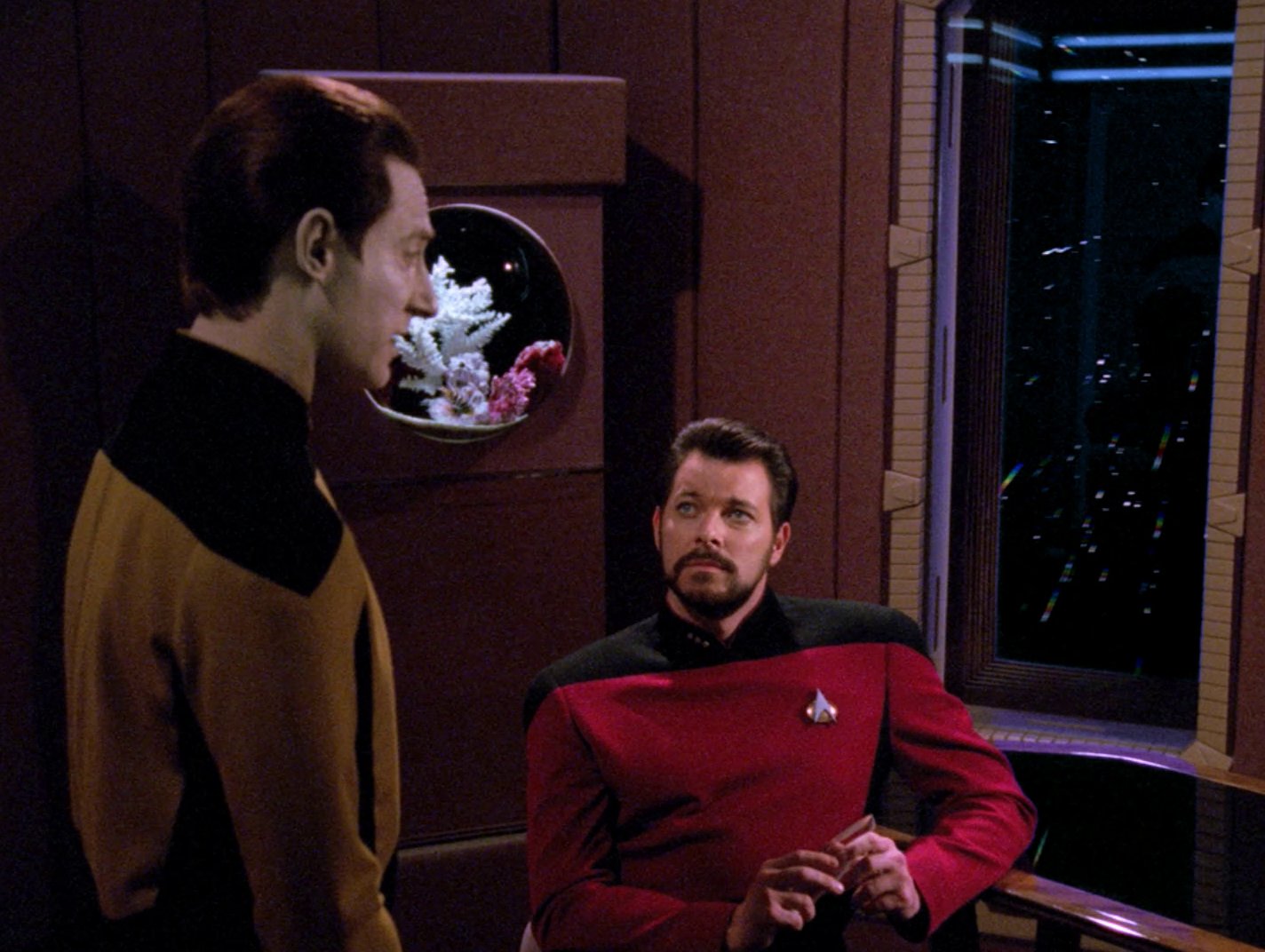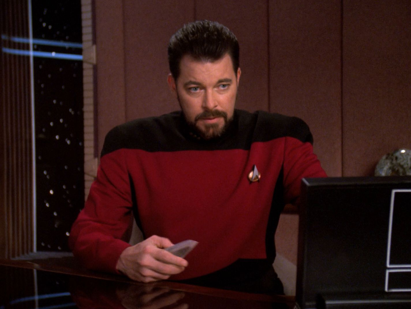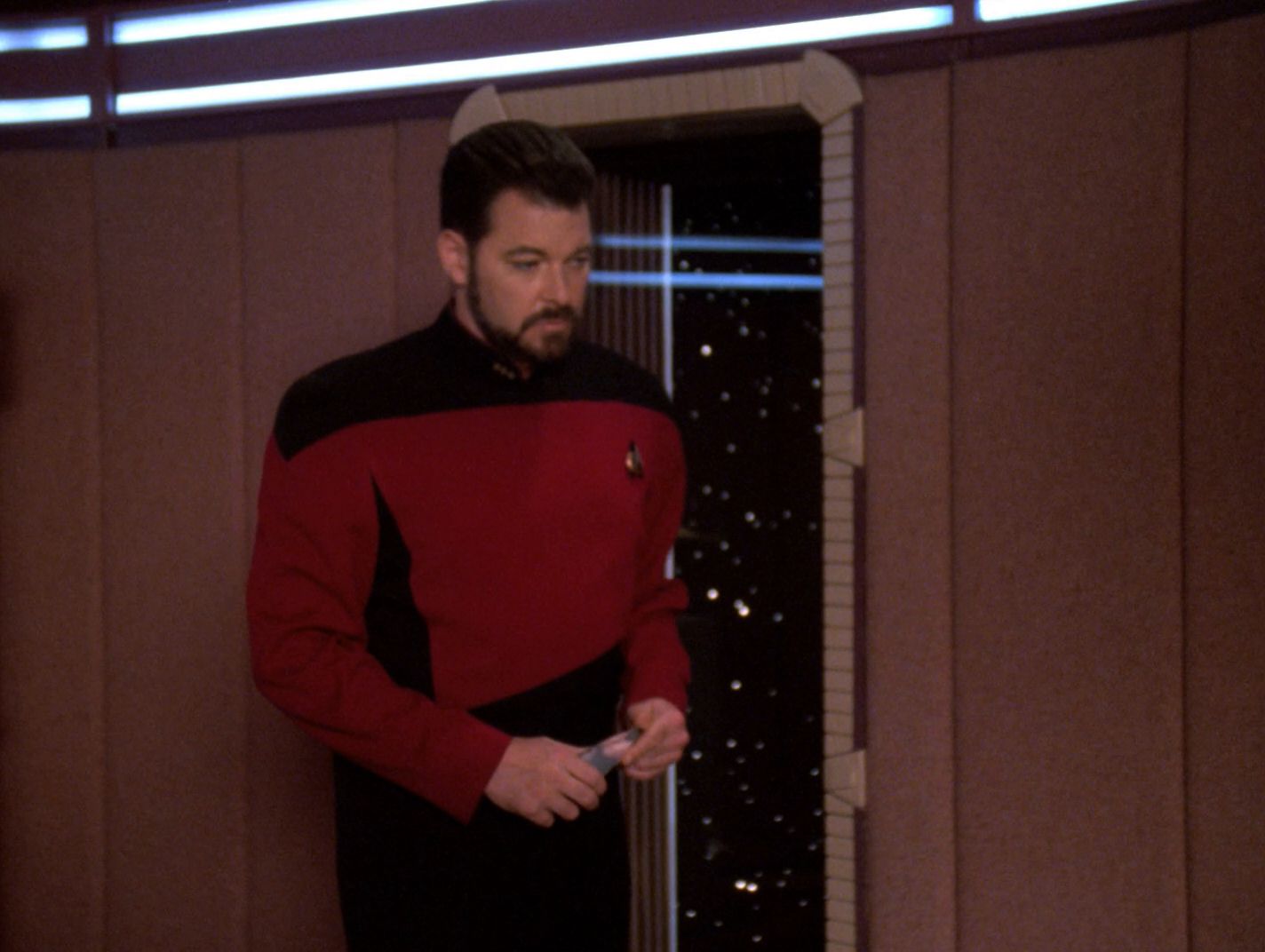 On two occasions, Riker is also seen playing with Picard's ready room crystal. He is the only person besides Picard who ever touches the crystal.