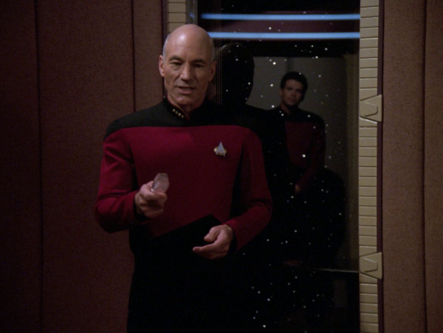 In all three of these season 3 and 4 episodes, Picard's dilemma only concerns one person, usually a fellow crew member. This is different in the four cases where Picard holds the crystal in season 5, all in the middle of the season, where the lives of a large number of people are at stake.