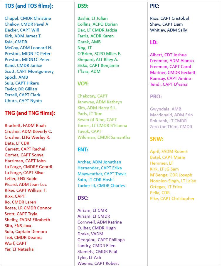 Here are all of the names, colour-coded by #StarTrek TV show. The first pic shows how the names are arranged on the commemoration wall in #StarfleetAcademy, the second pic lists al the names alphabetically and the third pic lists them by #StarTrek show. Compiling this took more than 4 hours...🖖