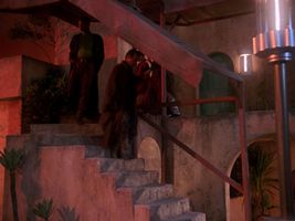 The same staircase can be seen in Ard'rian McKenzie's house in "The Ensigns of Command" and in the Uxbridge house in "The Survivors".