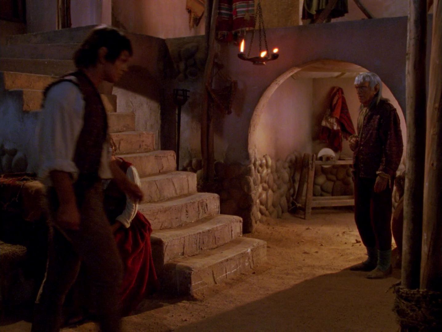 The same set with arches and the characteristic stairs is used for the village on Tau Cygna V in TNG: "The Ensigns of Command" and the one on Mintaka II in TNG: "Who Watches the Watchers".