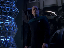 The same lattice sculpture can be seen in Marayna's control room in VOY: "Alter Ego" and in the Vori camp in VOY: "Nemesis". It also appears on Iden's ship in VOY: "Flesh and Blood I/II", with an unknown but more than decorative purpose.