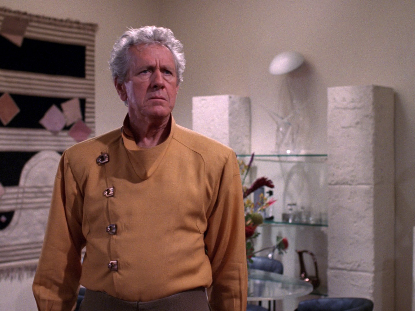 Wall reliefs consisting of tiles with a quadratic pattern appear in Riva's house in TNG: "Loud as a Whisper" and are later seen again on Angosia in "The Hunted", on Kataan in "The Inner Light" and on Vulcan in "Gambit II".