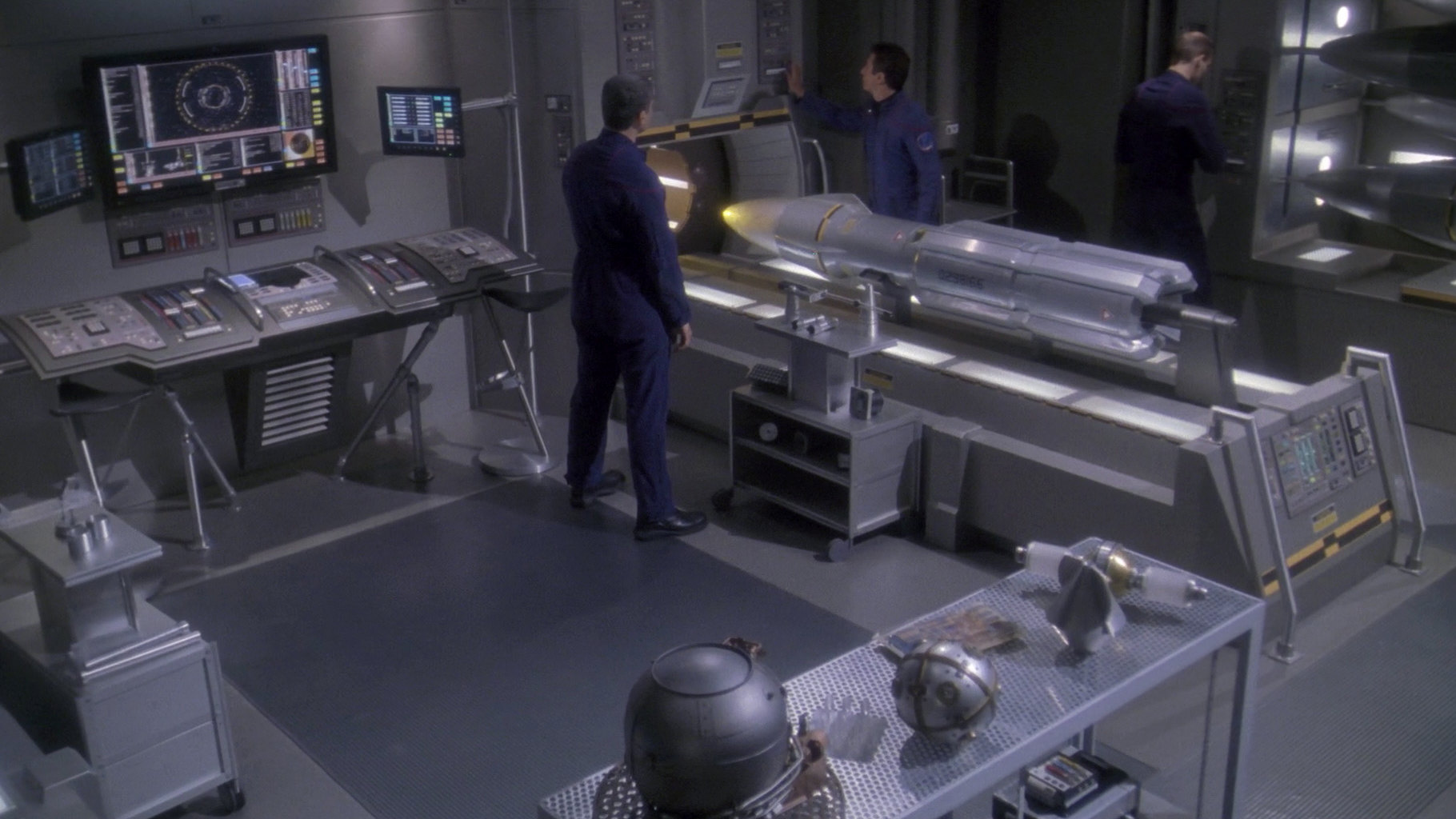 However, the sphere also appears without the frame. As something found in the debris of a Borg vessel, it is identified by Harry as an "autoregeneration unit" in VOY: "Dark Frontier". The device resurfaces as a Monean scanner in Rega's inventory in VOY: "Thirty Days" and also appears (together with its frame for a last time) on Tash's station in VOY: "The Voyager Conspiracy". We can further see it in an unknown role in ENT: "Silent Enemy" when Reed and Tucker try to convince Archer to let them install the phase cannons. The device reappears on Enterprise in "Singularity".