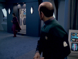 Another Ferengi chair appears in DS9: "Profit and Lace" (when Rom demonstrates how to behave like a female), but also in Dr. Ren's living room in VOY: "Ex Post Facto". All this unusual furniture was rented from the company Modern Props, which is out of business by now.