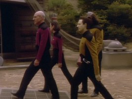 Dr. Graves has something in his office that looks like a primitive robotic dog (probably rather as a nostalgic decoration than as a display of his present work). The same prop can be seen in Ard'rian's house on Tau Cygna in TNG: "The Ensigns of Command". Here it is obviously meant to be something modern by the standard of the planet's technology, like the other robots that almost make even Data smirk.