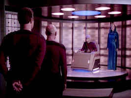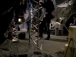 A rack used for the construction of the prototype unit in VOY: "Prototype" later appears as an examination couch on Dr. Gegen's starship in VOY: "Distant Origin". The prop undergoes a few modifications but is still essentially the same when it shows up in the Chaotica holoprogram in VOY: "Shattered" and on the Hirogen holoship in VOY: "Flesh and Blood".