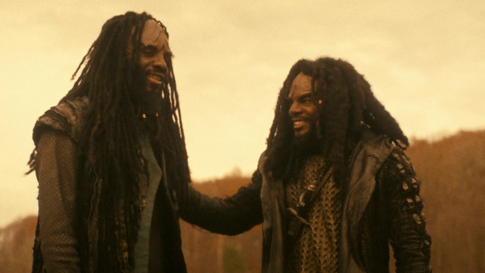In a revision of the revision, the Klingons get back their hair for season 2, along with make-up changes to make them more relatable again. A few new characters such as Kol-Sha in DIS: "Point of Light" and the unnamed man on L'Rell's bridge in "Such Sweet Sorrow II" are given a make-up that is closer to the universally accepted look. L'Rell even loses a third of her skull volume, but this particular change remains an exception. Other "long-headed" Klingons can still be seen in season 2. The growth of hair is explained in DIS: "Point of Light" as a tradition after the end of a war, as previously suggested by Mary Chieffo at New York Comic Con. It alleviates the problem with classic Klingons a bit, at least in a biological sense. But the notion that all Klingons without exception are bald during a war is absurd, considering that the Klingons were more or less always at war in the 22nd, in the 23rd and in the 24th century and all of them always had hair (except for General Chang).