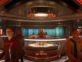 Conversely, the 32nd century as established in DIS since season 3 and in SFA often looks and works too much like in classic Trek. It does not convey the miracles of the far future well enough, perhaps because the people producing it don't think outside the box. Technology often comes with limits that shouldn't exist any longer, and sets are designed to be shiny and stylish, rather than being different.