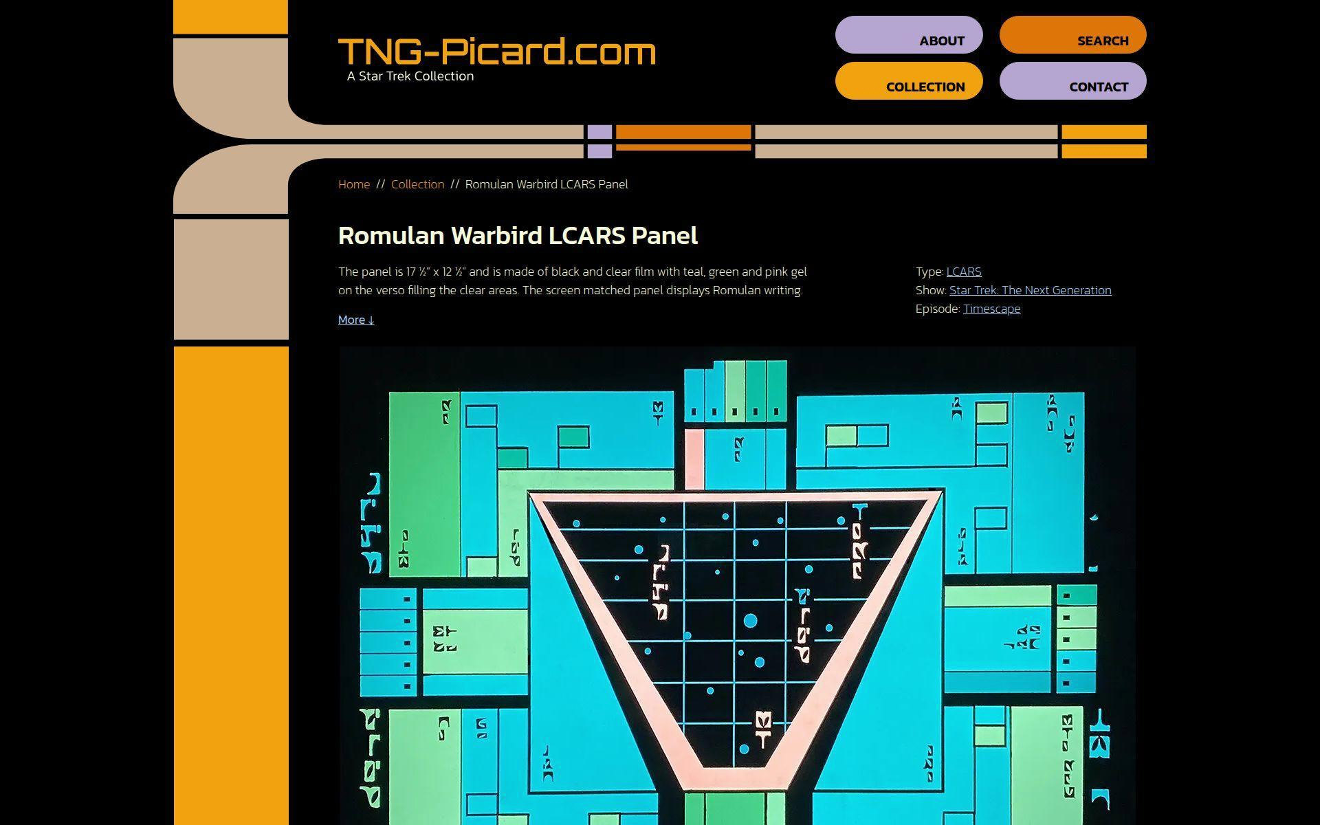 For Star Trek fans, the costumes, props and models that appeared in the various series and movies are far more than production pieces. They are tangible connections to the characters and their stories. Seeing them at exhibitions or even owning them is a special experience. TNG-Picard.com stands as an exceptional example of what such dedication can achieve. Built by a fan whose connection to Star Trek reaches back to its earliest days, this exhibition, which focuses on screen-used items from TNG and Star Trek Picard, reflects a lifetime of passion and commitment. The sheer scope of the collection is impressive in its own right. The thoughtful presentation in LCARS style, elegant but simple and intuitive, additionally sets the website apart. It turns a personal archive into a shared journey, inviting visitors to rediscover what gave the series its iconic look and feel, relive memorable moments from the screen and examine details that were never fully visible before. This site is the next best thing to actually seeing these pieces in a museum. Thank you for making them accessible to the public and for supporting our research at EAS quite a few times!