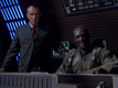 | The battle bridge viewscreen can be seen in this shot, not unexpectedly, as the set is a redress of the USS Enterprise-D battle bridge. The transparent domes housing rock samples are seen again in this screen capture as well. | ![]() "The Arsenal of Freedom" |