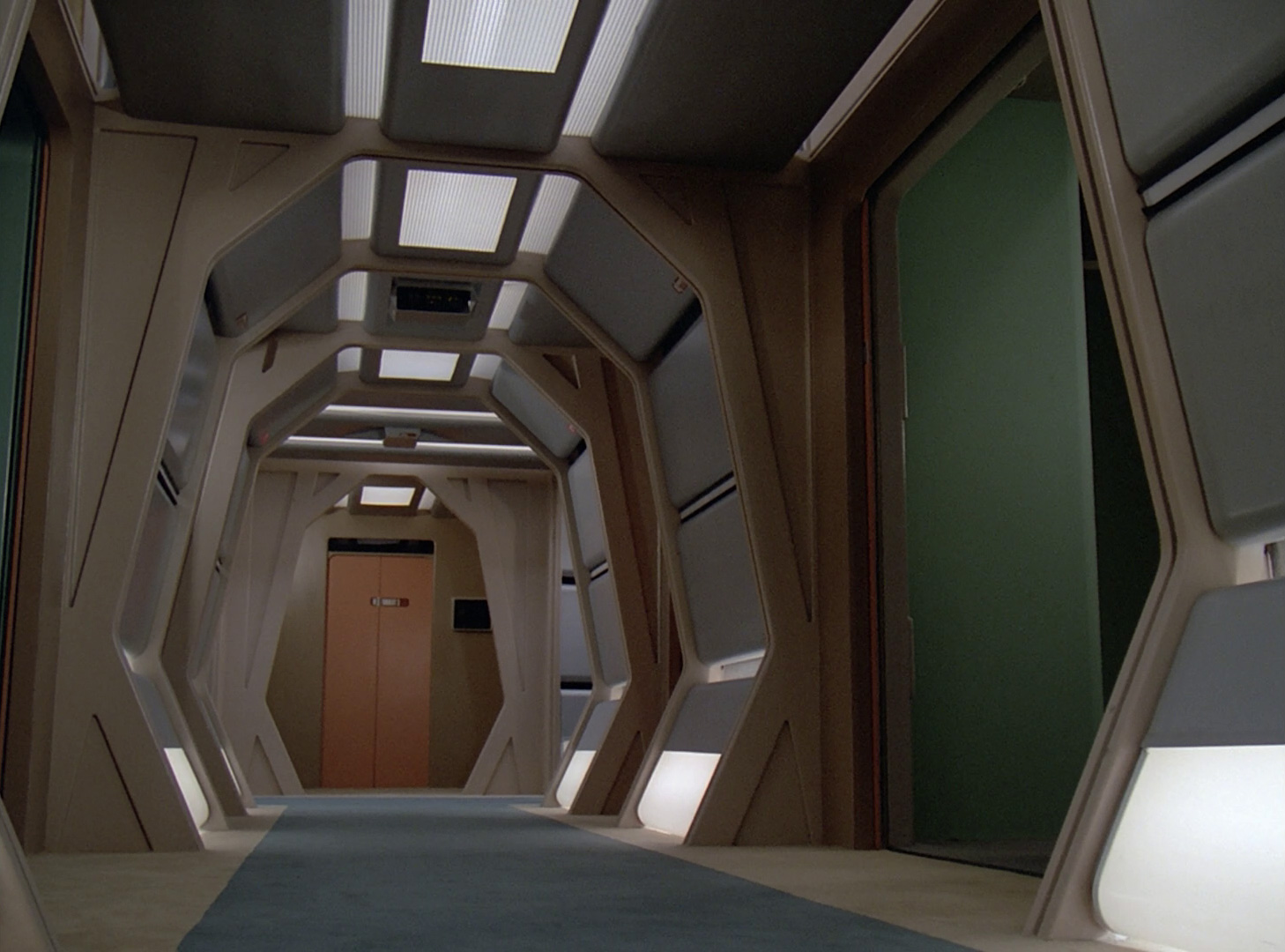 | As in the preceding episode "The Icarus Factor", the holodeck corridor no longer has a turbolift access. | ![]() "The Icarus Factor" |