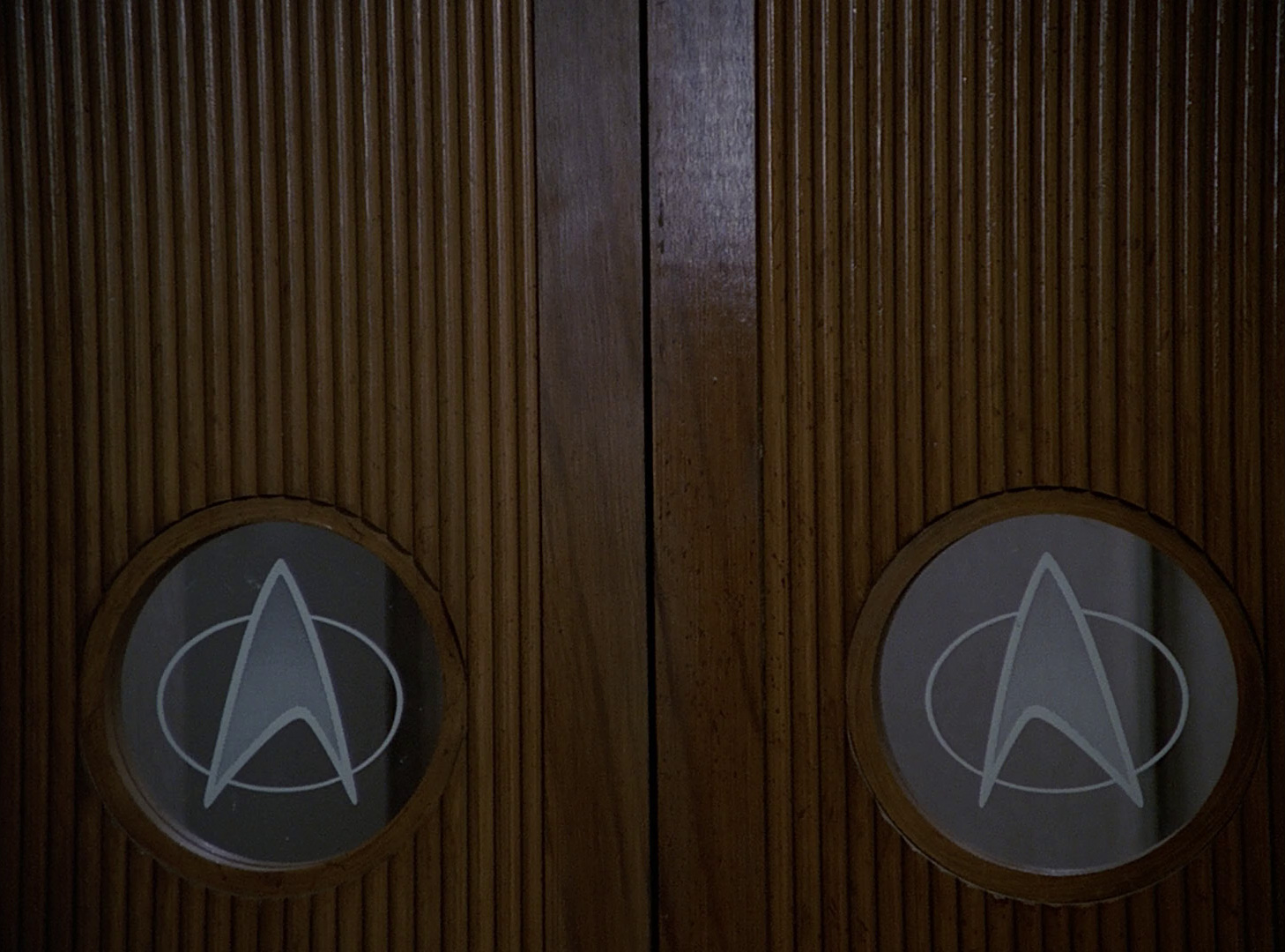 | A close-up of the Ten Forward doors, which were originally created for "Conspiracy" where they appear at Starfleet Headquarters. | ![]() "Conspiracy" |