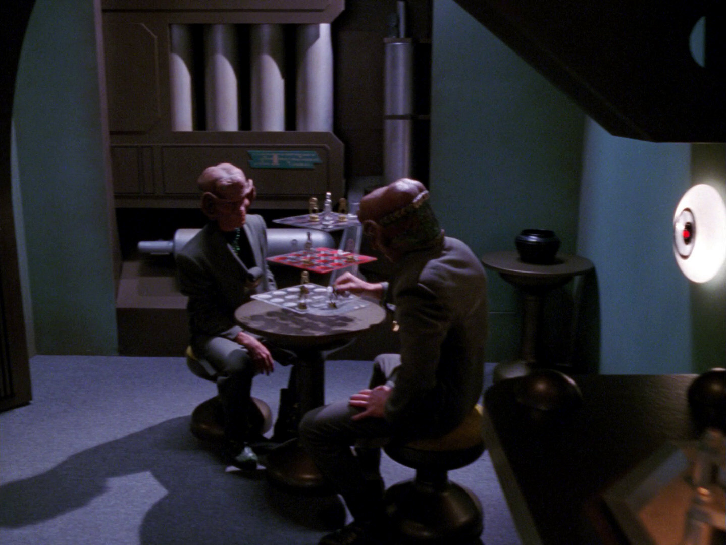 | First appearance of a Pakled. Although they will be repeatedly referred to in dialogue in later episodes, after "Samaritan Snare" this species will reappear only a few times as background aliens on DS9. Decades later, the Pakleds will be regular antagonists on Lower Decks. | ![]() DS9: "Melora" |