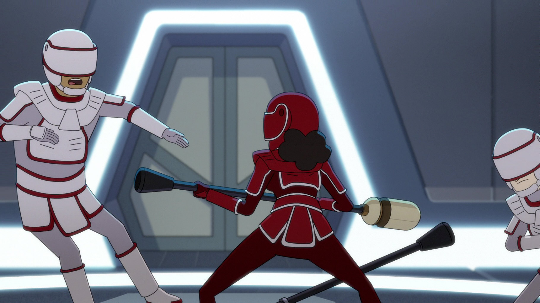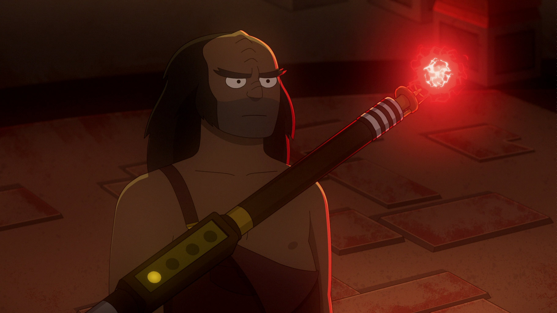 Klingon painstiks appear for the first time in this episode. Decades later, similar painstiks can be seen in LOW: "A Farewell to Farms". |