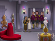 | On the floor, to the right of Kivas Fajo, the names Kei and Yuri are written twice in Japanese script (starting from the gap in both directions). This is a reference to the anime Dirty Pair, as they can be found in several other TNG episodes. | ![]() ![]() ![]() |
