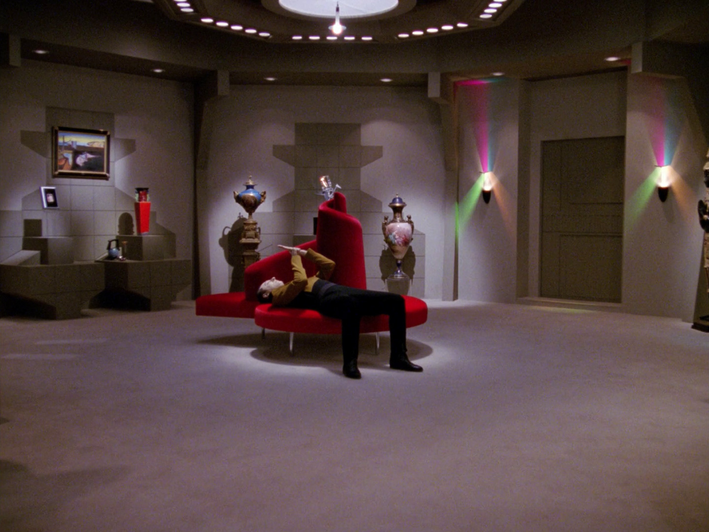 The stage layout comes from Star Trek Stages History. Thanks to @goddessofcheese for the hint about the Sèvres porcelain, to @wobbles and @Bladdertrio for identifying the Roman bust and to @CyrilChakal for the origin of the Anubis mask. Special thanks to Angelo Cifaldi for the photo of the LCARS translight!