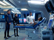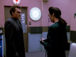The transparent spreadsheet usually found in sickbay can be nicely seen in this shot. Also note on this and on the previous cap that the sickbay backdoor was moved to the left and received a rounded frame after season 1. |