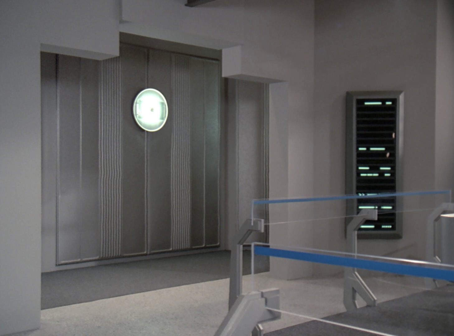| Blinking wall consoles like this one are also seen in Dr. Soong's lab in "Datalore", in the terraforming station on Velara III in "Home Soil" and in Dr. Manheim's lab in "We'll Always Have Paris". | ![]() "Datalore" |