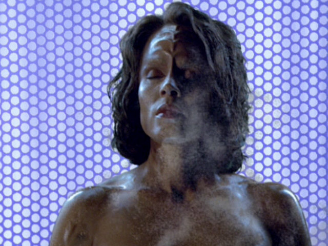 Tuvok and Neelix were merged to Tuvix through a transporter accident. "Symbiogenesis" was also the originally planned title of the episode "Tuvix".